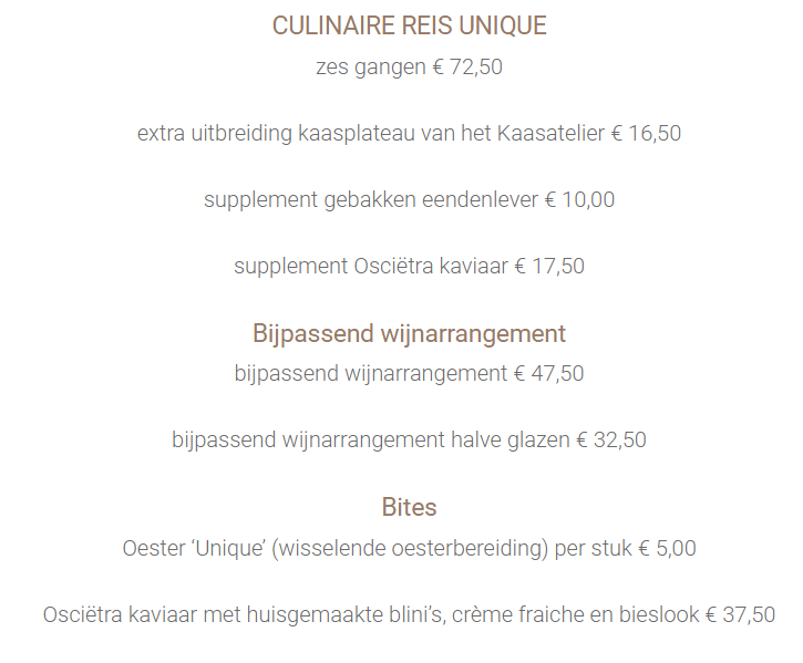 Welcome to Restaurant Unique, an exquisite culinary haven located in the heart of Gouda, Netherlands. Renowned for its exceptional fixed menu of six meticulously crafted courses, each dining experience is a unique journey through flavors and textures.